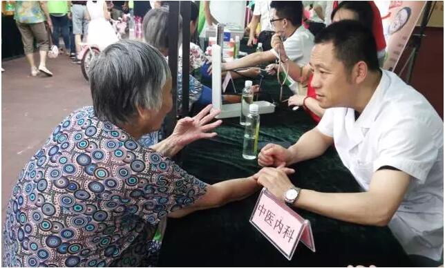 康丽义诊专家在为社区大娘做诊断服务