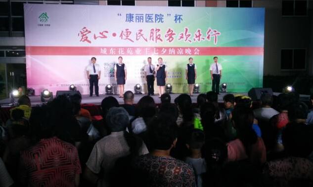 为弘扬和宣传党的“四个全面”精神,加强社区精神文明建设、活跃社区生活氛围、创建满意物业、和谐人居社区。8月9日,“康丽”杯爱心·便民服务欢乐行第二站暨城东花苑业主七夕纳凉晚会成功举办!